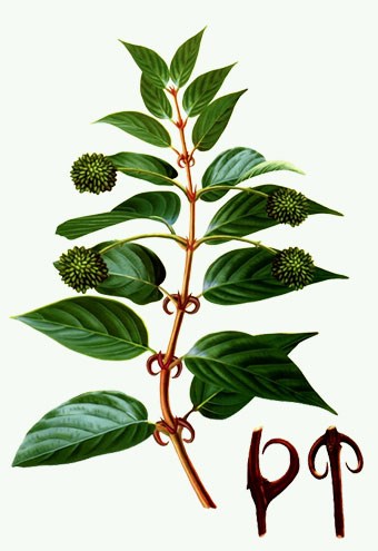 【來源】為茜草科常綠木質藤本植物鉤藤 Uncaria rhynchophylla (Miq.) Jacks.、大葉鉤藤 Uncaria macrophylla Wall.、毛鉤藤 Uncaria hirsuta Havil.、華鉤藤 Uncaria sinensis (Oliv) Havil. 或無柄鉤藤 Uncaria sessilifructus Roxb. 的帶鉤莖枝。