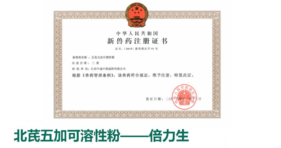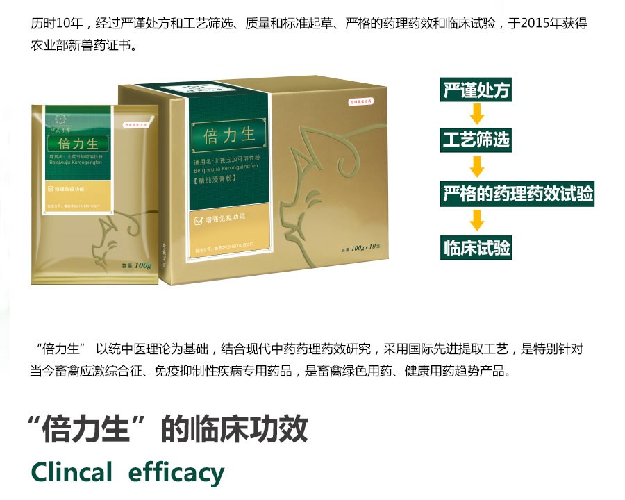 國家三類新獸藥。抗應激、增強免疫用方藥。