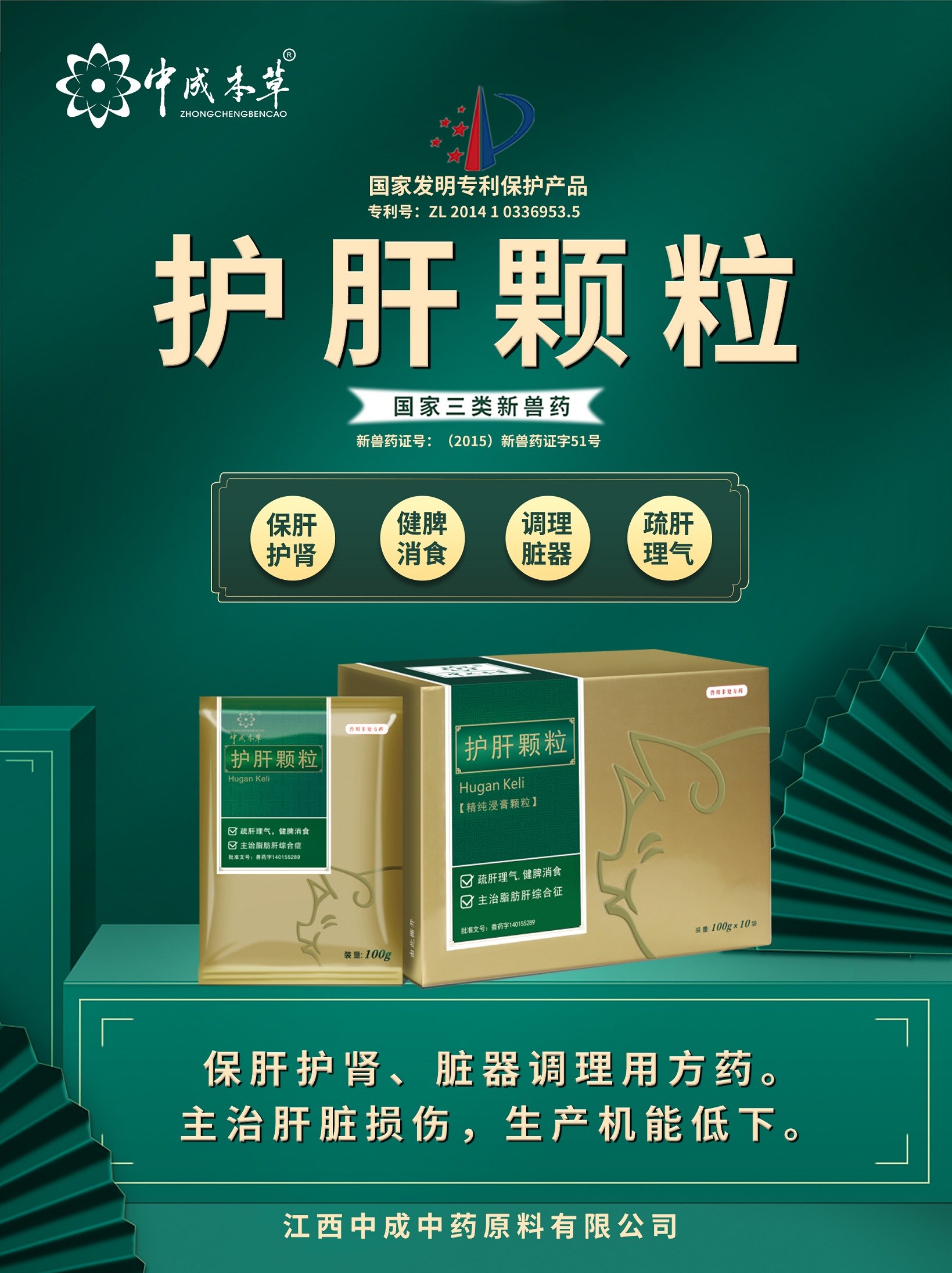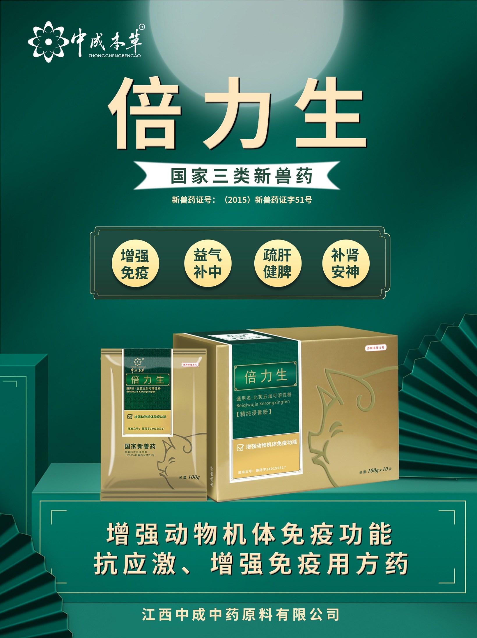 2008年中成承擔“十一五”國家科技支撐計劃“中獸藥顆粒劑規模化、標準化生產關鍵技術研究”,目前獲得國家新獸藥證書產品有“護肝顆粒”、“北芪五加可溶性粉”、“香芪顆粒”、“人參葉口服液”、“注射用雙黃連”等七個,國家專利二十余項,“雙黃連可溶性粉”榮獲江西特色中藥產品。其中倍力生以傳統中醫理論為基礎,結合現代中藥藥理藥效研究,采用國際先進提取工藝,是特別針對當今畜禽應激綜合征、免疫抑制性疾病專用藥品,同時也是中成中藥守正創新理念的具體體現。