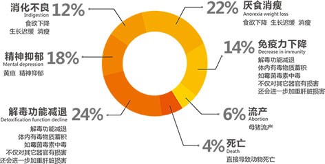 霉菌毒素是指產毒霉菌在基質(谷物、飼料等)上生長繁殖時產生的有毒次級代謝產物和基質發霉變質后形成的有毒化學物質。飼料中常見的霉菌毒素有黃曲霉毒素、赭曲霉毒素、煙曲霉毒素、串珠鐮孢菌素、T-2毒素、嘔吐毒素、青霉震顫毒素、玉米赤霉烯酮等,這些毒素都會引起肝細胞變性、壞死、出血、膽管和肝細胞增生,損傷肝臟細胞。